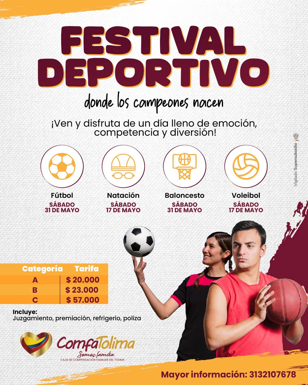 17 y 31 de Mayo, días vibrantes de fútbol, natación, baloncesto y voleibol te esperan. ⚽🏊🏀🏐