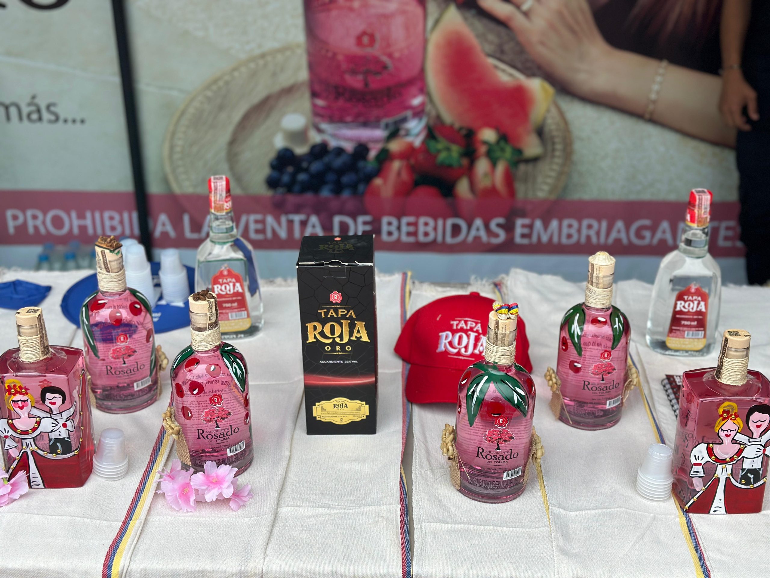 Además, uno de los momentos más destacados de la feria fue la actuación de la artista Yuri Roa, quien pintó en vivo botellas de aguardiente Rosado con temática de café, fusionando el arte y la cultura local en una experiencia única y atractiva para los visitantes del stand de la marca.