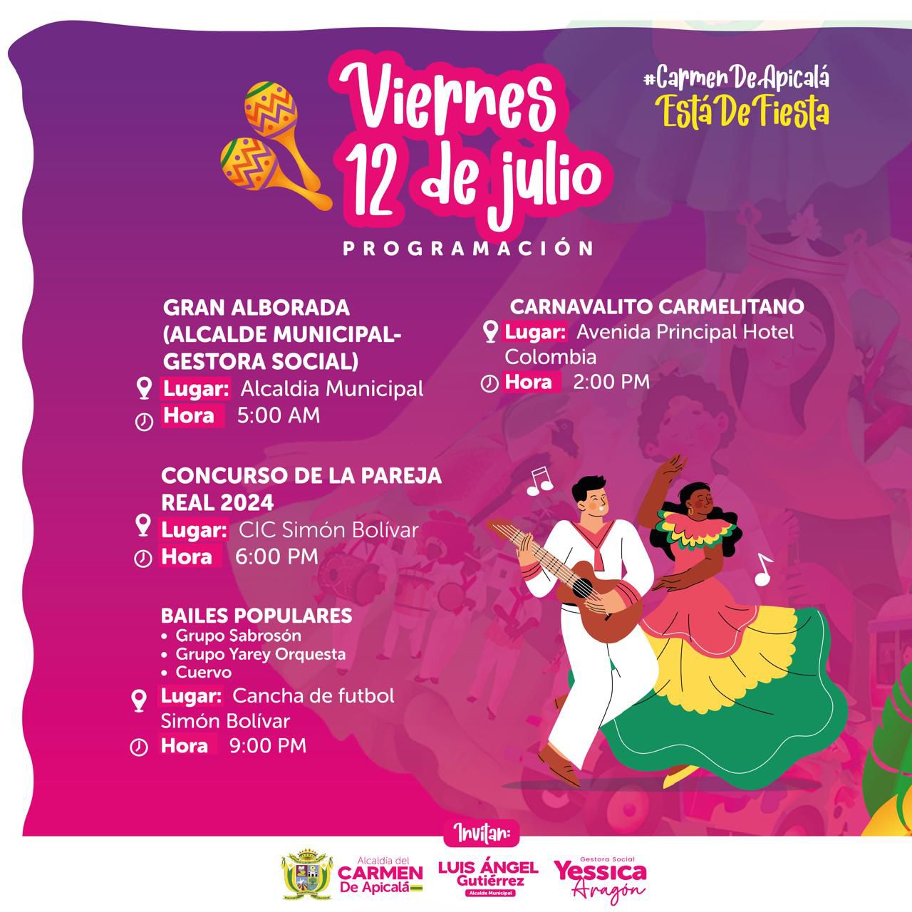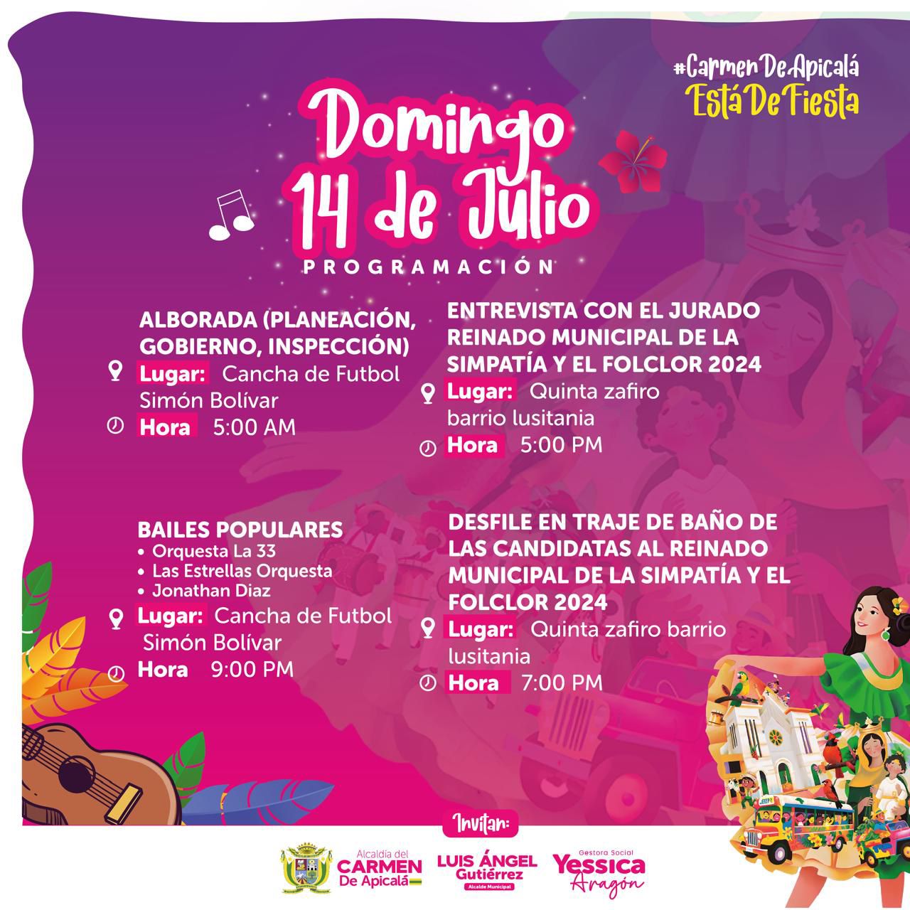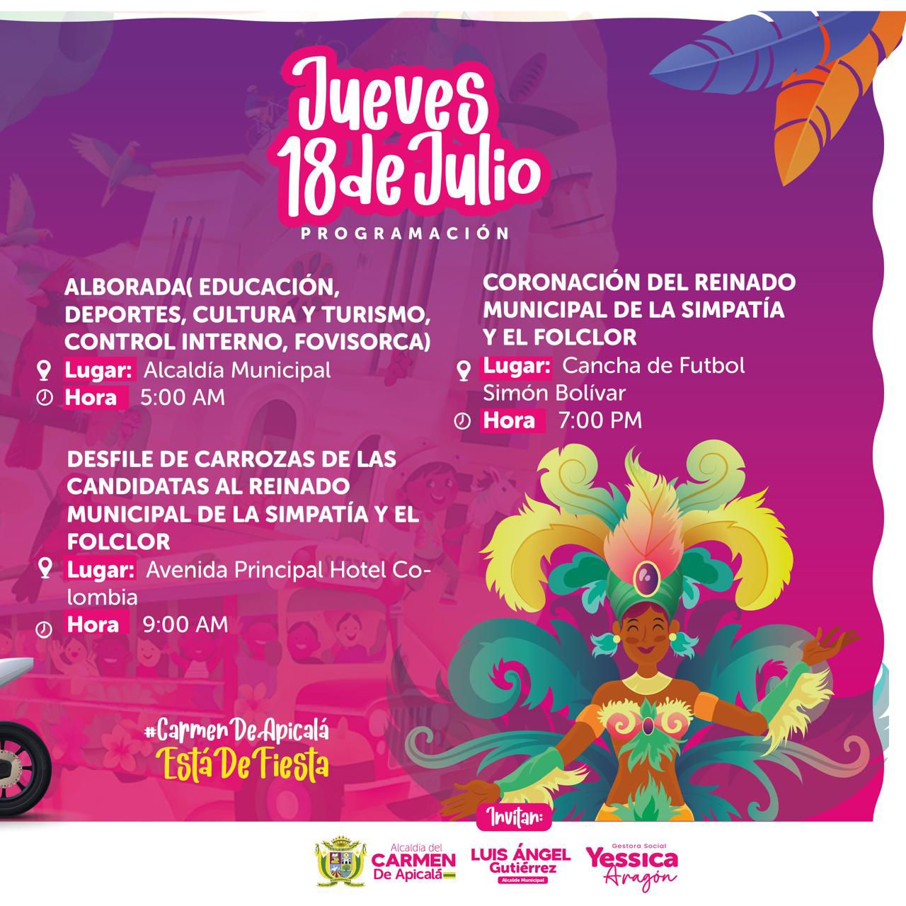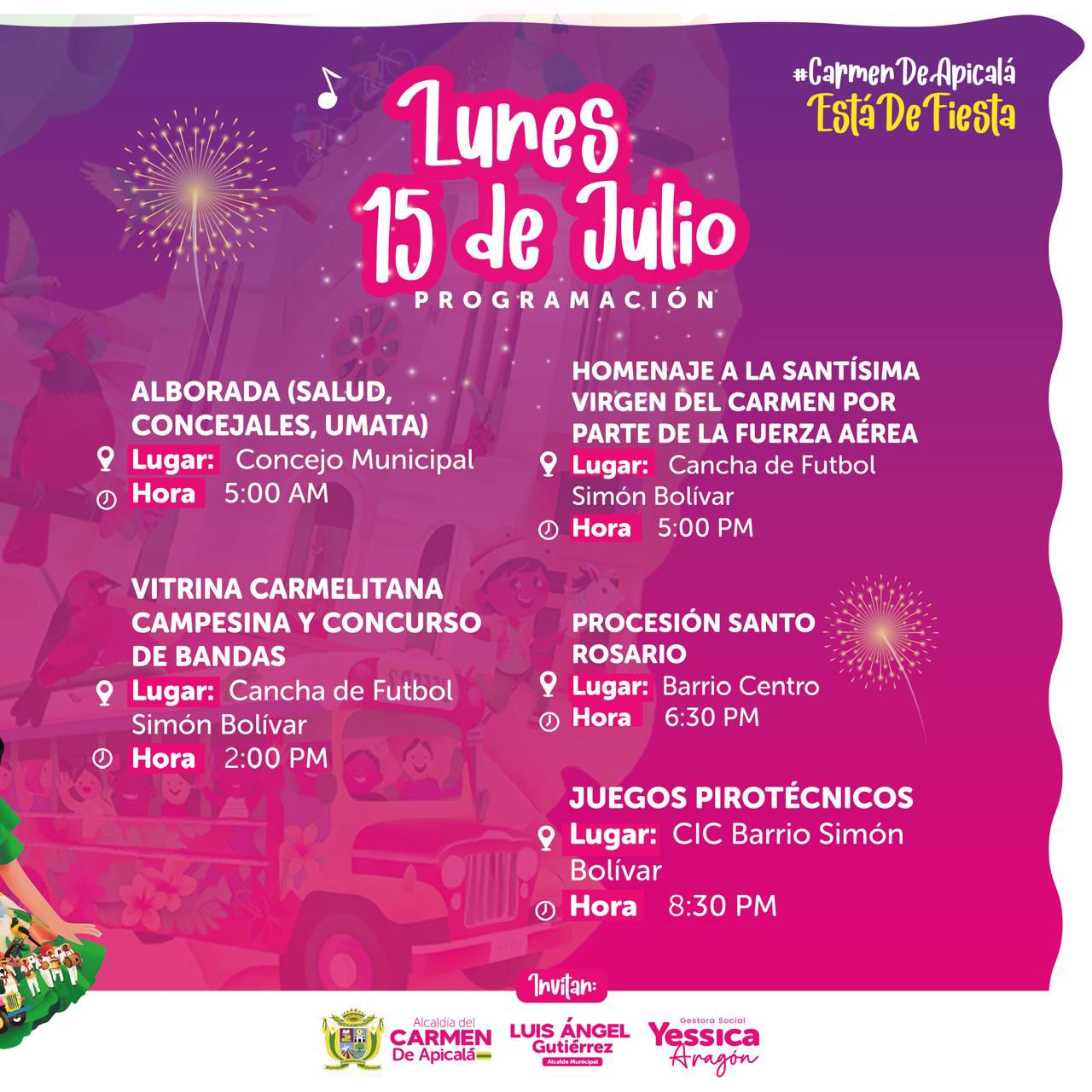 El alcalde de Carmen de Apicalá, Luis Ángel Gutiérrez, invita a todos los residentes y visitantes a ser parte de esta significativa celebración. «Estamos preparados para atenderlos, para servirles. Hay diversos eventos culturales y sociales que vamos a estar presentándoles.»