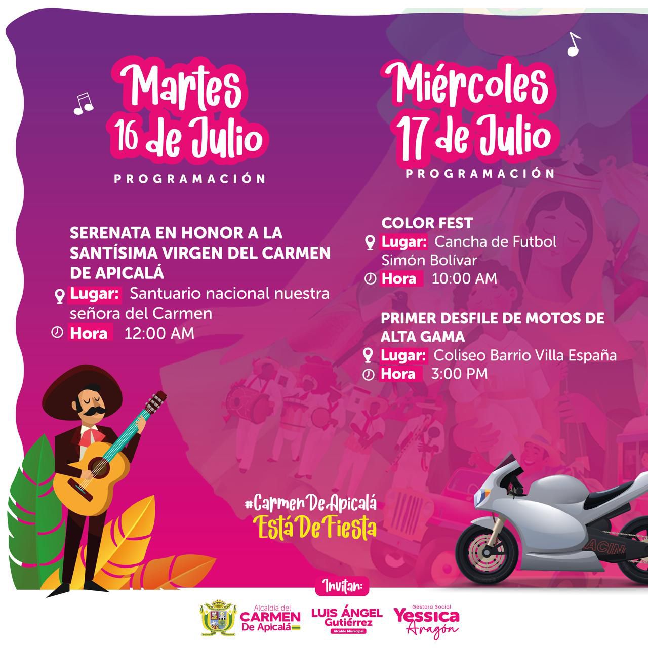 No te pierdas esta oportunidad de ser parte del 81° aniversario de las Fiestas Patronales de Carmen de Apicalá, una celebración que promete ser un evento memorable para todos los asistentes.