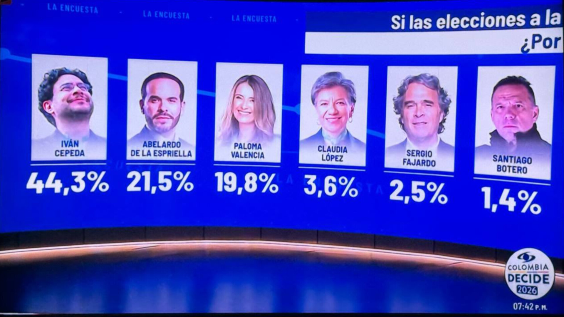 Los enfrentamientos contra figuras de centro-izquierda e independientes muestran brechas todavía más profundas a favor del candidato oficialista. Frente a Sergio Fajardo, Cepeda alcanzaría un abrumador 59,8% contra el 36,4% del exgobernador de Antioquia, reflejando el desgaste de la propuesta centrista. El escenario más dispar se presenta ante Claudia López, donde Cepeda logra un 62,6% de intención de voto frente a un 31,6% de la exalcaldesa de Bogotá. Estos márgenes sugieren que el electorado progresista y joven se ha aglutinado de manera casi total en torno a la figura de Cepeda, dejando sin oxígeno a sus antiguos aliados.