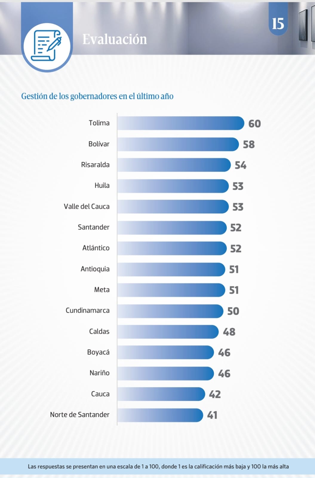 Esta evaluación se realizó a través de encuestas distribuidas entre líderes de opinión de diversas redes, incluyendo políticos, medios de comunicación, académicos, el sector privado, organizaciones sociales y líderes digitales en 17 departamentos: Antioquia, Atlántico, Boyacá, Caldas, Cauca, Cesar, Córdoba, Cundinamarca, Huila, Nariño, Meta, Norte de Santander, Risaralda, Santander, Tolima, Valle del Cauca y la ciudad de Bogotá. Es decir, no se aplicó en 15 regiones del país.
