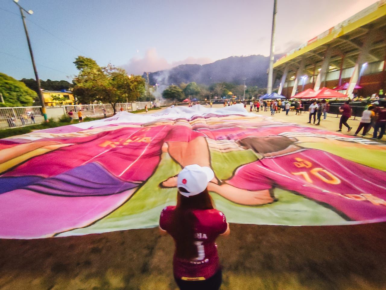Como regalo a los hinchas, en el partido contra el Junior, se lució una imponente tela de 24 metros de ancho por 32 de alto, diseñada exclusivamente para este evento por el arquitecto Rafael Ricardo Serrano.