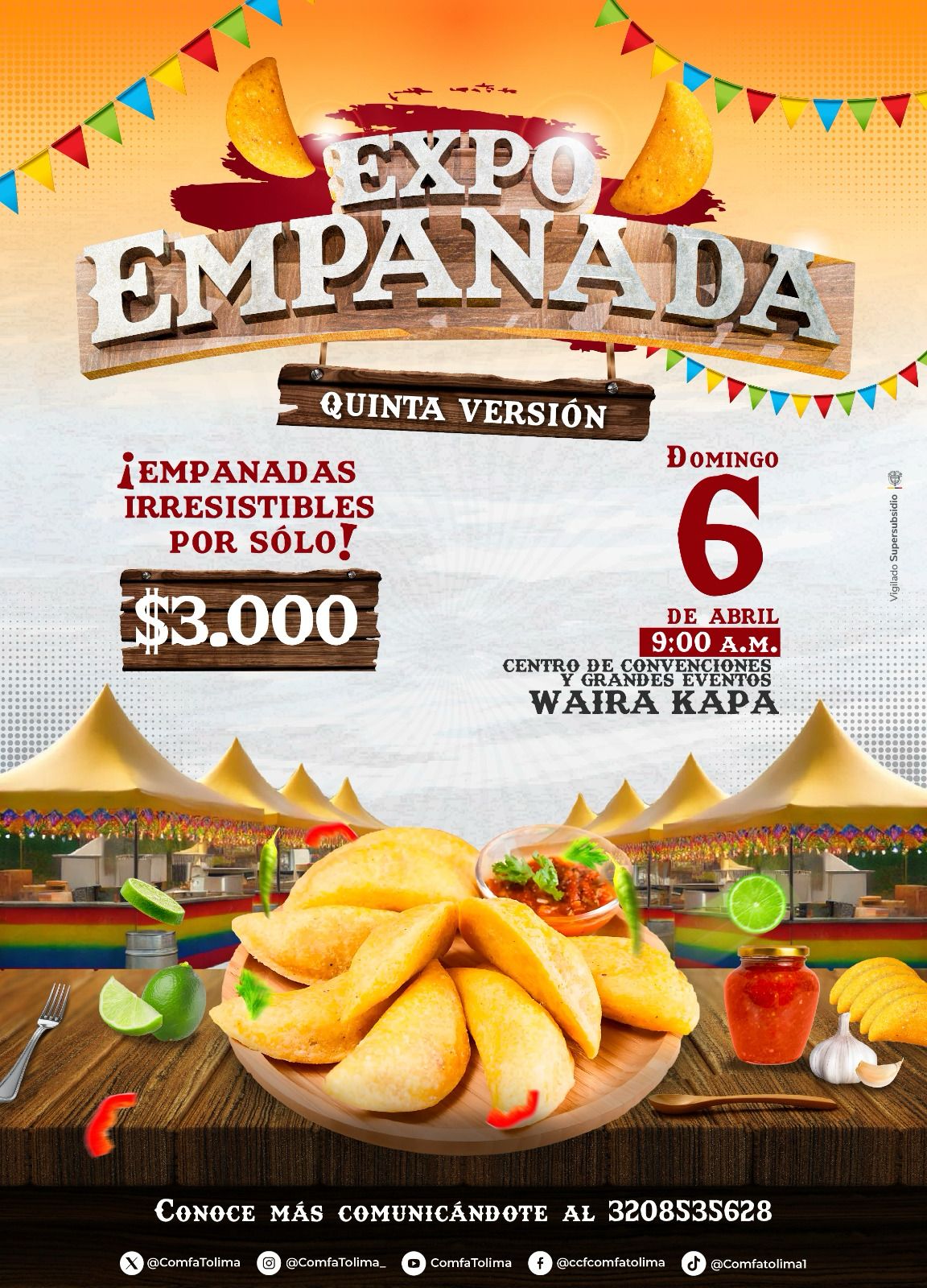 ComfaTolima invita a todos los amantes de la buena gastronomía a disfrutar de la quinta edición de ExpoEmpanada 2025, el festival que celebra uno de los productos más tradicionales de la región. La cita será el domingo 6 de abril en Waira Kapa, ubicado al interior del Centro Recreacional Lagos Club ComfaTolima.
