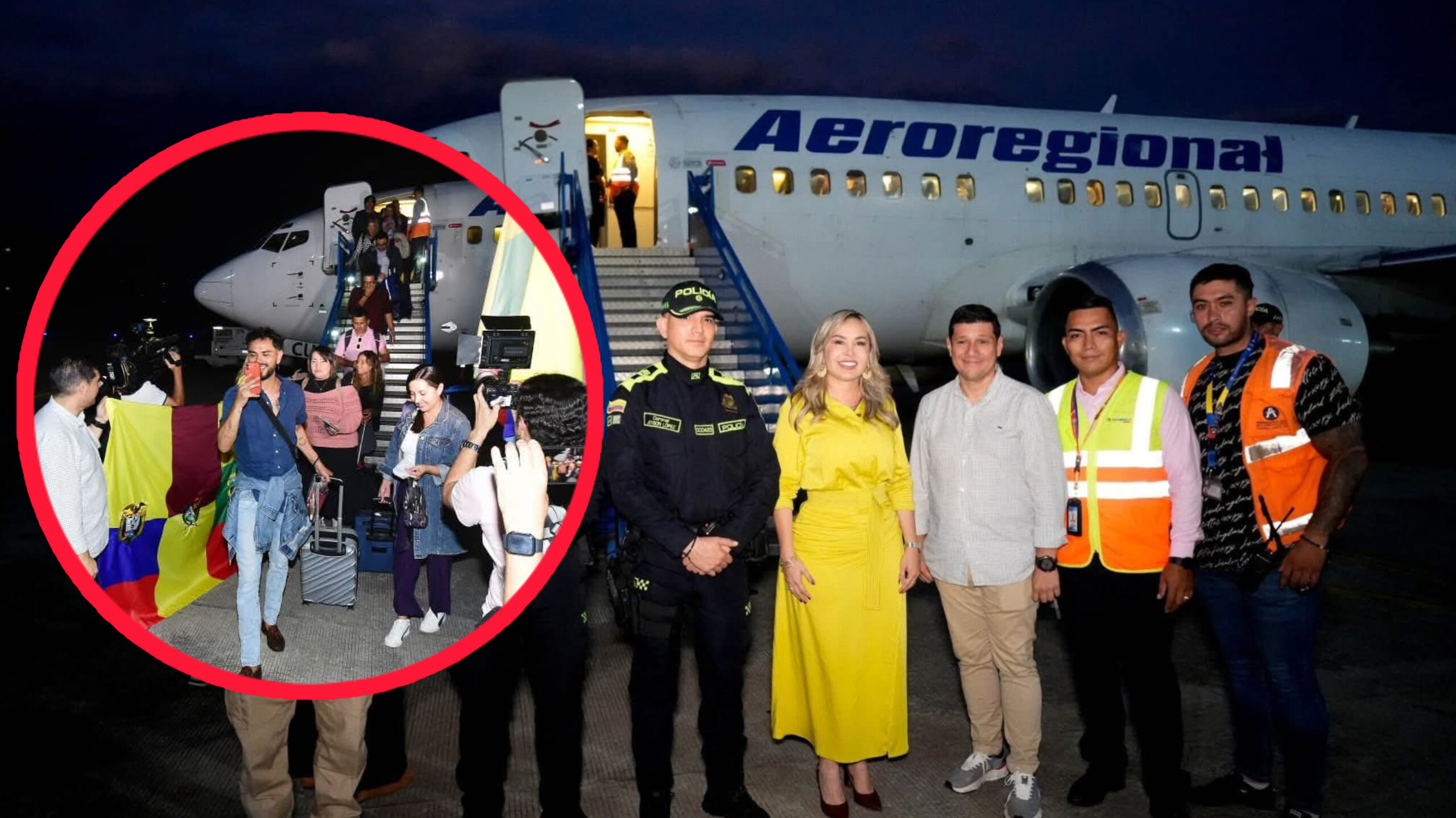 La operación aérea arribó en horas de la noche al Aeropuerto Perales, procedente de Quito, transportando cerca de 100 pasajeros extranjeros que participan en la agenda internacional de la ciudad.